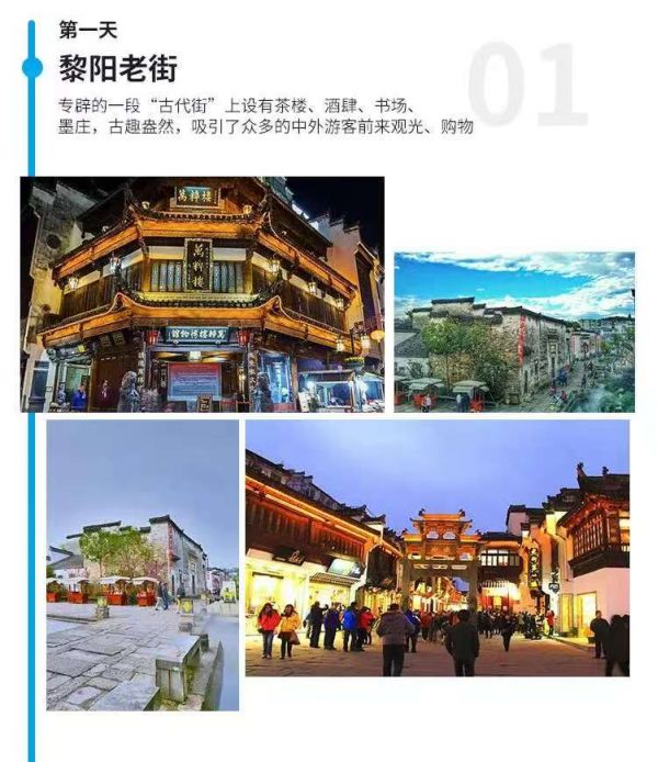 到達(dá)黃山市后自由逛黎陽老街:今黃山市屯溪區(qū)黎陽鎮(zhèn)的舊時(shí)街市,與屯溪老街隔江相望。屯溪老大橋(原名鎮(zhèn)海橋)作為他們之間的唯一通道橫跨其間。老大橋往南,走過一座橫跨在名為河底溪的小溪上的西鎮(zhèn)橋就是黎陽老街。大部分舊宅不復(fù)存在,但依然留下了具有徽州傳統(tǒng)風(fēng)格的徽派民居數(shù)座及民國石庫門風(fēng)格的老宅。 老屯溪人代代相傳的俗語“明清個(gè)屯溪,唐宋個(gè)黎陽”,它隱隱地告訴了我們黎陽在昱城人心中的分量。