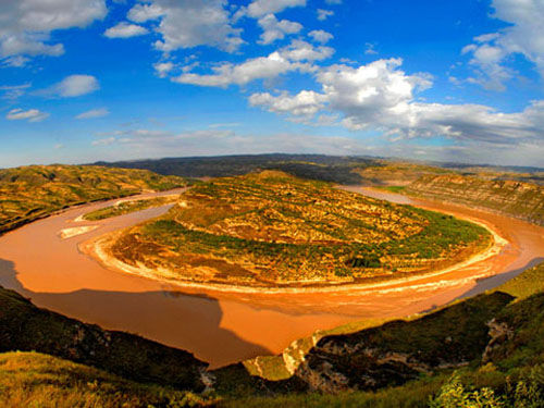 位于“黃河蛇曲國(guó)家地質(zhì)公園”內(nèi),如同神話(huà)傳說(shuō)中玉皇大帝在天廷丟落在黃土高原丘陵溝壑區(qū)的"河圖"和"洛書(shū)",她酷似天地造化的天然太極圖。