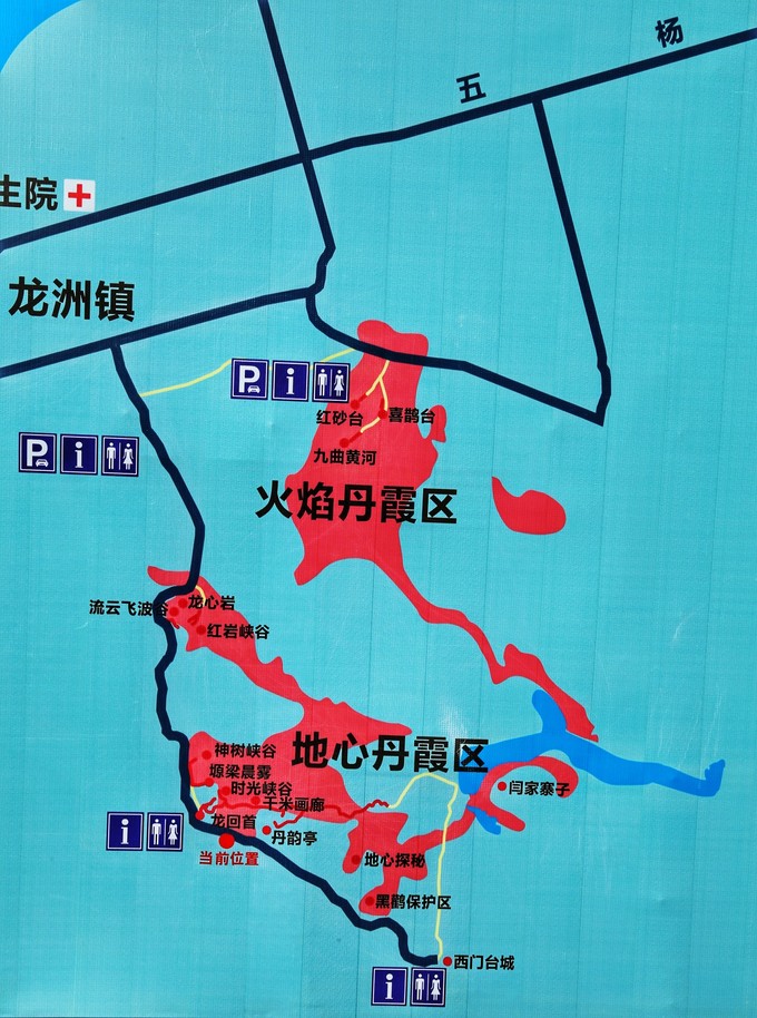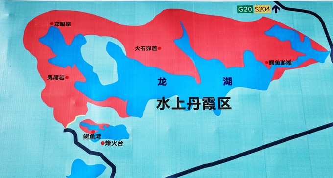 景區(qū)是很大一片區(qū)域,分為水上丹霞區(qū)、火焰丹霞區(qū)、地心丹霞區(qū)三個(gè)部分。路標(biāo)指示不明確,只有“水上丹霞區(qū)”和“火焰丹霞區(qū)”兩個(gè)地方的標(biāo)識(shí),具體需要自行找路。根據(jù)當(dāng)?shù)厝私榻B,整個(gè)景區(qū)有1、2、3、4、5號(hào)五個(gè)景點(diǎn),1至4號(hào)可以自行開(kāi)車游覽,5號(hào)由于路況不好并且有十多公里路遠(yuǎn),需要花200元左右請(qǐng)當(dāng)?shù)厝藥凡拍芮巴聢D是現(xiàn)場(chǎng)拍的景區(qū)示意圖,能很清晰的看出景區(qū)分布,供大家參考。