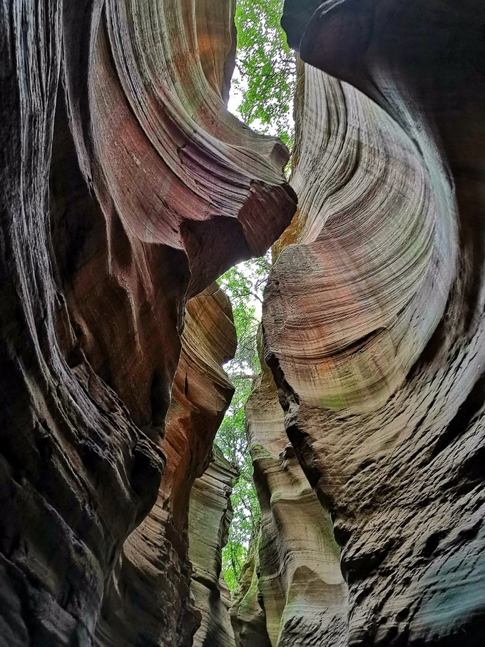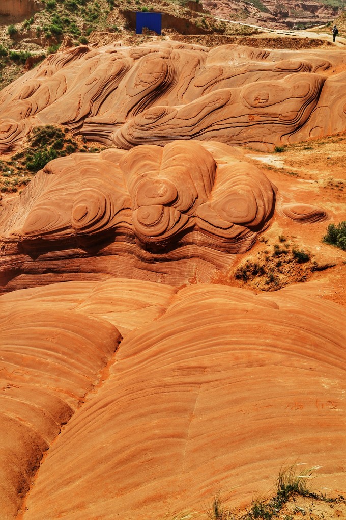 龍洲丹霞B景區(qū),目前命名火焰丹霞,也是最類似美西波浪谷的地方,這里向我們展示了由數(shù)百萬(wàn)年的風(fēng)、水和時(shí)間雕琢砂巖而成的奇妙世界。深深的溝壑里,千百年雨水沖刷成各種各樣奇特的線條,形狀如波浪、獸首、流水、云朵....展示著風(fēng)采神韻、萬(wàn)千姿態(tài)、四季景色各異。