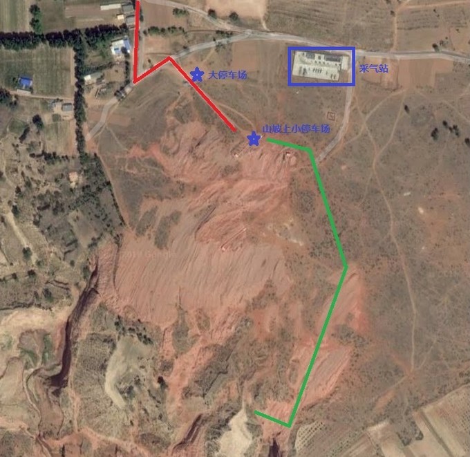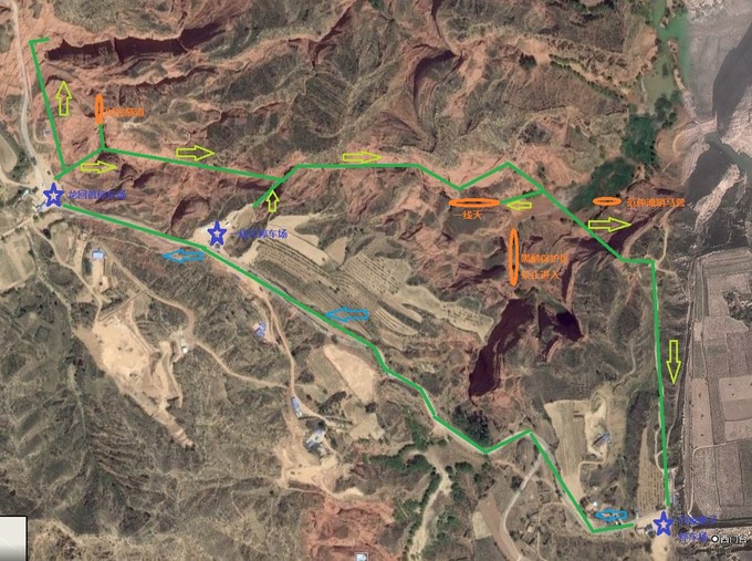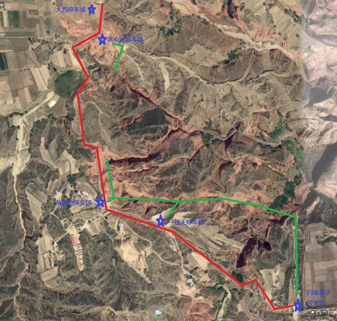 紅線為行車路線,綠色為步行路線,藍(lán)星為停車場(chǎng)。純正原創(chuàng),僅供參考。