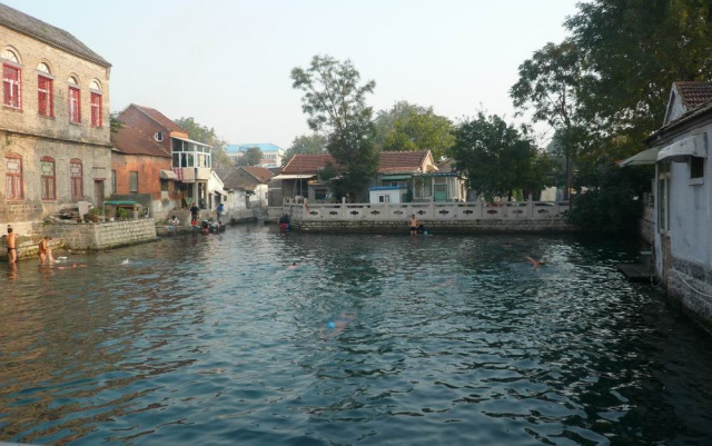 太極泉,在大明湖路西端路南,濟南第七職業(yè)中專院內(nèi)。1997年3月,附近泉眼在建房施工中被填埋,此泉遂噴涌溢流,故臨泉建邊長1.2米的方池,水順管道注入排污暗溝,流進大明湖。