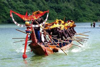 扒龍舟歷史悠久,是多人集體劃槳競賽。龍舟競渡分為請龍、祭龍神、游龍和收龍等幾個版塊。龍舟競渡前一般都要舉行隆重的祭祀儀式,先要請龍、祭神。在端午前要擇吉日從水下起出,祭過神后,安上龍頭、龍尾,再準(zhǔn)備競渡。閩、臺則往媽祖廟祭拜。在過去,人們祭祀龍神時氣氛很嚴肅,多祈求福佑、風(fēng)調(diào)雨順、去邪祟、攘災(zāi)異、事事如意。在湖北的屈原家鄉(xiāng)秭歸,也有劃龍舟祭拜屈原的儀式流傳。