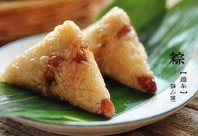 粽,即“粽籺”,俗稱粽子,主要材料是糯米、餡料,用箬葉(或柊葉)包裹而成,形狀多樣,有尖角狀、四角狀等。粽子由來久遠,最初是用來是祭祀祖先神靈的貢品。傳入北方后,用黍米(北方產(chǎn)黍)做粽,稱“角黍”。由于各地飲食習(xí)慣的不同,粽形成了南北風(fēng)味;從口味上分,粽子有咸粽和甜粽兩大類。端午食粽的風(fēng)俗,千百年來在中國盛行不衰,已成了中華民族影響最大、覆蓋面最廣的民間飲食習(xí)俗之一,而且流傳到朝鮮、日本及東南亞諸國。