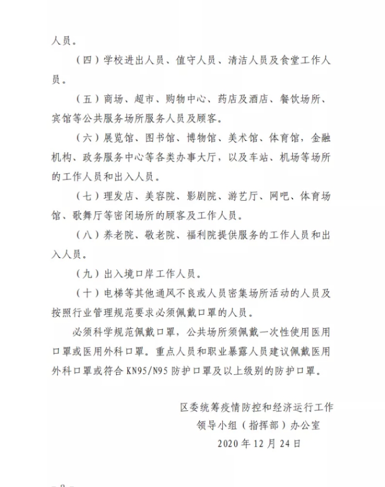 關(guān)于在公共場(chǎng)所佩戴口罩的通知