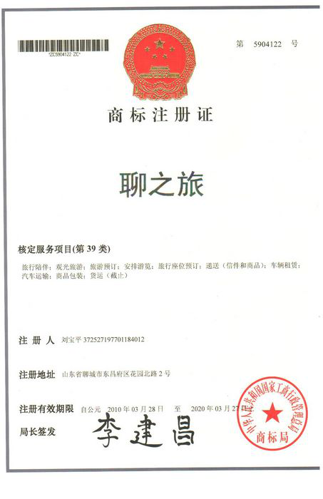 聊之旅商標注冊證書