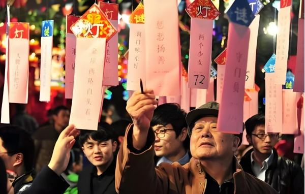 “猜燈謎”又叫“打燈謎",是元宵節(jié)后增的一項(xiàng)活動,燈謎最早是由謎語發(fā)展而來的,起源于春秋戰(zhàn)國時期。它是一種富有譏諫、規(guī)戒、詼諧、笑謔的文藝游戲。謎語懸之于燈,供人猜射,開始于南宋?!段淞峙f事·燈品》記載:"以絹燈剪寫詩詞,時寓譏笑,及畫人物,藏頭隱語,及舊京諢語,戲弄行人。"元宵佳節(jié),帝城不夜,春宵賞燈之會,百姓雜陳,詩謎書于燈,映于燭,列于通衢,任人猜度,所以稱為"燈謎"。如今每逢元宵節(jié),各個地方都打出燈謎,希望今年能喜氣洋洋的,平平安安的。因?yàn)橹i語能啟迪智慧又饒有興趣,所以流傳過程中深受社會各階層的歡迎。