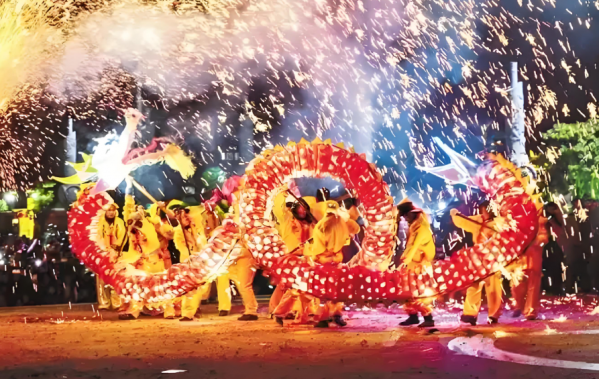 【湖南省】常德上元各家以椒為湯,加入韭菜儆果諸物款待客人,稱為“時湯”。新田縣游完龍燈后,將龍燈付之一炬,稱為“送災(zāi)”。