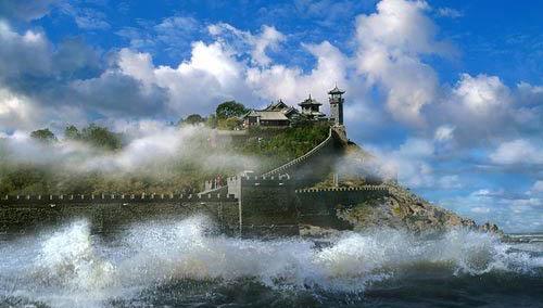 大家好!歡迎你們光臨蓬萊。中國有句古語:“有朋自遠(yuǎn)方來,不亦樂乎?”中國自古便有好客的傳統(tǒng),蓬萊人更以熱情著稱。今天,由我為大家做導(dǎo)游服務(wù)。大家可以叫我小牛。希望通過我的認(rèn)真努力和您的友好合作,我們共同度過一段愉快、美好的時(shí)光!蓬萊市位于山東半島最北端,屬于煙臺的一個(gè)縣級市,是煙臺蘋果的主要產(chǎn)地之一,水產(chǎn)品產(chǎn)量居煙臺市第一,黃金產(chǎn)量居全國第五。蓬萊是“山海名幫”,千百年來一直被譽(yù)為“仙境”。這可能與“海市蜃樓”有直接關(guān)系?!昂J序讟恰笔桥钊R十大仙景之一,當(dāng)?shù)厝怂追Q“神山現(xiàn)世”,一般出現(xiàn)在春夏兩季,不知道各位是否有這份幸運(yùn)?!