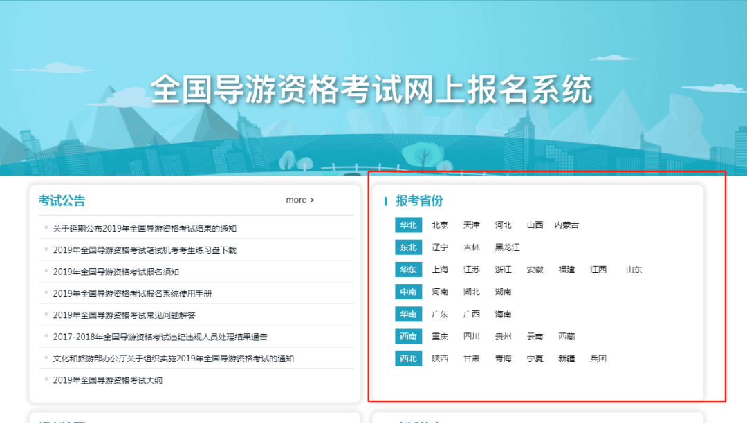 一、進(jìn)入該網(wǎng)站,點(diǎn)擊【全國導(dǎo)游資格考試報考入口】,選擇【所在省份】進(jìn)入