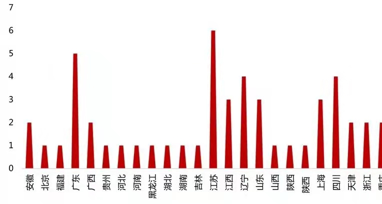 從空間分布來(lái)看,紅色文化型景區(qū)分布較為廣泛,東部、中部、西部都很豐富。由于在不同歷史發(fā)展階段,革命斗爭(zhēng)活動(dòng)重心地區(qū)各異,同時(shí),伴隨歷史及革命進(jìn)程所涌現(xiàn)的領(lǐng)袖和名人,其誕生地也表現(xiàn)出區(qū)域性特點(diǎn),所以,紅色文化型景區(qū)具有較明顯的地域集聚性特征。數(shù)據(jù)顯示,華東地區(qū)上榜數(shù)量最多,華北、華南、華中、西南、東北等地亦多有分布。