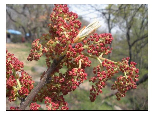 黃連木花期3月~4月,花粉量多、含蜜量大,是早春重要的蜜源植物。種子經(jīng)榨取油脂后的渣粕含有蛋白質(zhì)和大量粗纖維是優(yōu)良的動物飼料。