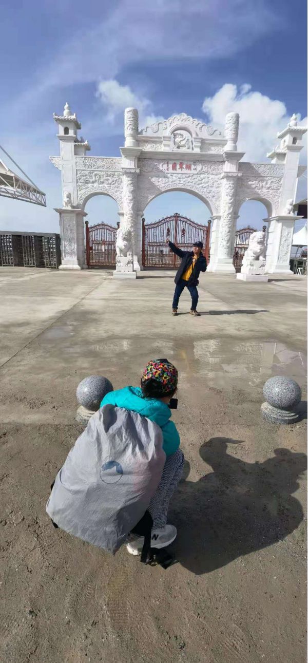 但是接近茶卡鹽湖的時候奇跡出現(xiàn)了,天放亮了,雨漸漸的小了,而我們進入景區(qū)的時候,雨突然停了。太陽也越出了云層,向我們微笑著招手。大家歡呼了,真是上天保佑我們能看到鹽湖了。