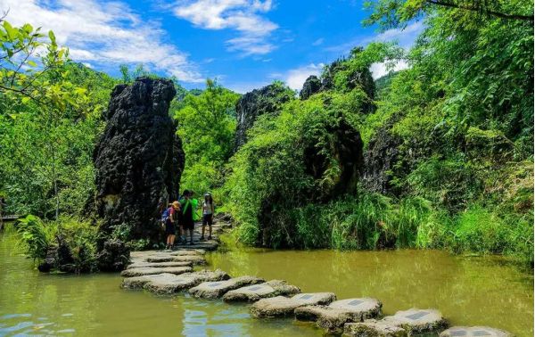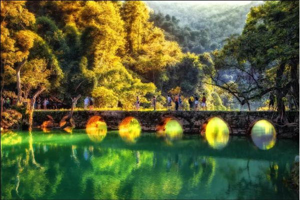 上午:早餐后乘車前往荔波。抵達(dá)后用中餐,后游覽世界自然遺產(chǎn)地,中國(guó)最美麗的地方之一【小七孔景區(qū)】(不含小七孔電瓶車40元/人,保險(xiǎn)10元/人,必須消費(fèi)敬請(qǐng)自理)在寬僅1公里、長(zhǎng)12公里的狹長(zhǎng)幽谷里,集洞、林、湖、瀑、石、水多種景觀于一體,玲瓏秀麗,有“超級(jí)盆景”的美譽(yù)。游覽景區(qū)名字由來(lái)地【小七孔古橋】。欣賞景區(qū)靈動(dòng)多姿的各色瀑布:起迭著【68級(jí)跌水瀑布】,順贄而下,奔瀉而去;【拉雅瀑布】布精巧醉人,水珠飛濺;【臥龍?zhí)镀俨?/strong>】銀絲瀉地,潭水色彩斑斑斕絢麗;【翠谷瀑布】在群峰緊鎖中蒼翠欲滴。感受赤足濕身樂(lè)趣的【水上森林】,清澈的水流沖刷著青石,行走于其中,宛若身臨瓊瑤仙池;【鴛鴦湖泛舟】(不含鴛鴦湖游船30元/人,非必須消費(fèi)項(xiàng)目,自愿消費(fèi))—尋找一份愛(ài)情;嫵媚而迷人的【響水河】更是貫穿了整個(gè)風(fēng)景區(qū)。