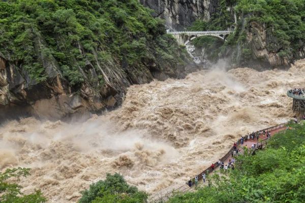 金沙江經(jīng)長(zhǎng)江第一灣之后忽然掉頭北上,從哈巴雪山和玉龍雪山之間的夾縫中硬擠過去,原本平靜祥和的江水頓時(shí)變得怒不可遏,形成了世界上最壯觀的大峽谷,而峽谷中最窄的地方就是我們今早的目的地——聞名天下的【虎跳峽】 。我們的團(tuán)期覆蓋虎跳峽最壯美的汛期,震撼的視覺沖擊能瞬時(shí)將你驚得無言,狂怒的江水拍打著崢嶸亂石,激起沖天水柱和浪花, 浪與岸、浪與岸之間碰撞發(fā)出雷霆般的轟鳴,空氣中也滿帶著泥沙味道。在大自然的鬼斧神工面前,人是如此渺小和微不足道。