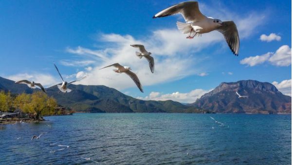 想要賞瀘沽湖日出美景的朋友今天就要起個(gè)早了哦,當(dāng)水天相接的地方閃現(xiàn)出第一縷光,金光便開始爭(zhēng)相恐后地從平靜的湖面中躍出來,打破瀘沽湖寧靜的晨,直到這輪旭日完全沖破云層,晨曦播撒在這個(gè)世外桃源的湖面上、山坡上、草地上,柔和的光暈照亮了整個(gè)大地。靜謐生出熱鬧,黑夜誕出光明,瀘沽湖的日出就是如此壯觀。