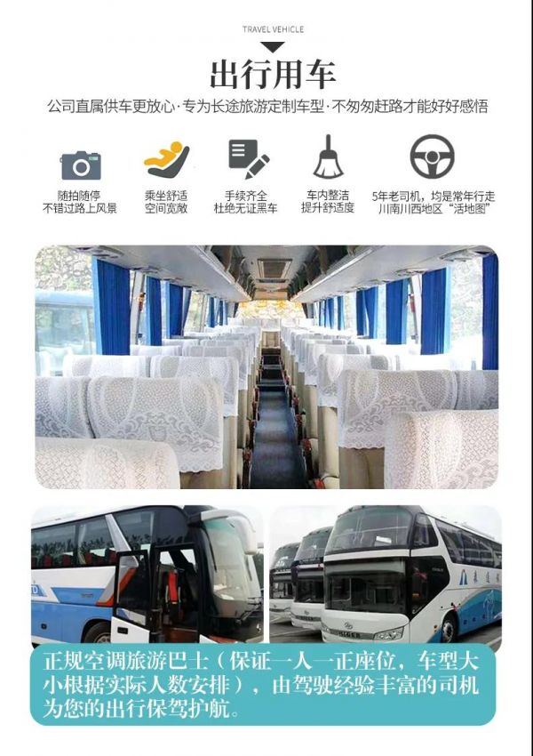 1、關(guān)于車輛交通:目前四川旅游市場(chǎng)8座以下車輛無法辦理旅游牌照,請(qǐng)游客知悉,以此理由提起的投訴我方拒不受理,望您諒解。