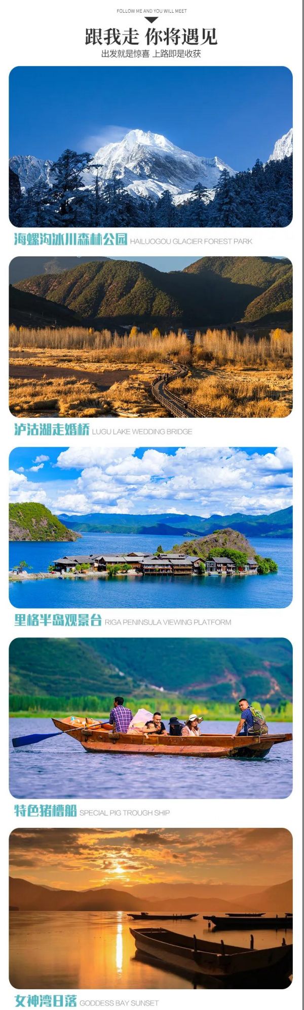 瀘沽湖+海螺溝冰川森林公園+西昌衛(wèi)星發(fā)射基地+螺髻山99里溫泉+360°環(huán)湖+走婚橋旅拍+親愛的客棧+賞水性楊花+女神灣日落+瀘沽湖