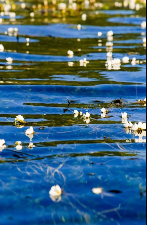 我們先登上【里格半島】,這個(gè)美麗的半島是瀘沽湖最具代表性的攝影圣地,這里有碧波如鏡的湖面,高空的白云和四周的山峰清晰地倒影水中,把湖山天影融為晶瑩的一體,微風(fēng)徐來,湖面上便蕩起層層漣漪,給靜謐的瀘沽湖添上一份生機(jī)靈動(dòng)。然后我們來到島上的【情人灘】,灘邊上的樹都是成對(duì)生長的,猶如情侶一般不離不棄地屹立在湖邊,情人灘的名字也由此而來;情人灘還有著瀘沽湖聞名遐邇的一道風(fēng)景——【水性楊花】,一朵朵純潔的小白花星星點(diǎn)點(diǎn)零落分布,遠(yuǎn)看卻又聲勢(shì)浩當(dāng)?shù)摹鞍哉肌绷苏麄€(gè)湖面,細(xì)長的花枝在水下隨波浪搖晃,那扭動(dòng)著的模樣像極了少女翩翩起舞,白色的花朵探出湛藍(lán)的天空和清澈的湖面,有如繁星掛滿夜空,美不勝收。