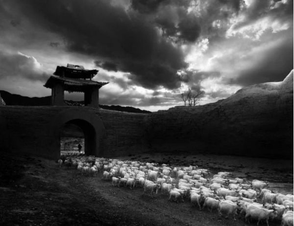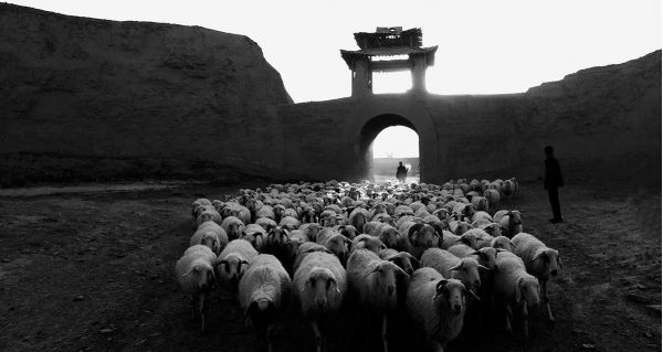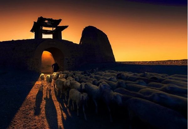 5、景泰古城的落日城樓,牧羊歸來(lái)的場(chǎng)景,光影在城樓斜陽(yáng)里,牧群歸來(lái),塵世喧囂的生活。