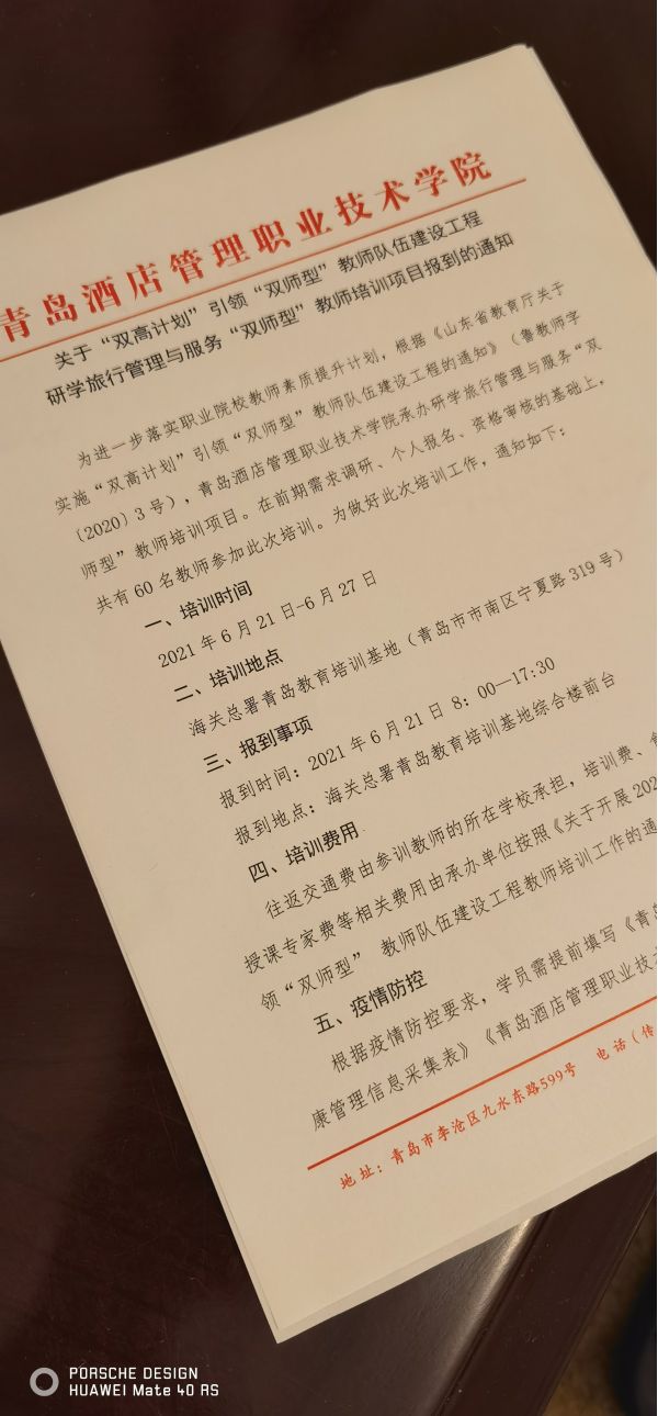 為進(jìn)一步落實(shí)職業(yè)院校教師素質(zhì)提升計(jì)劃,根據(jù)《山東省教育廳關(guān)于實(shí)施“雙高計(jì)劃”引領(lǐng)“雙師型”教師隊(duì)伍建設(shè)工程的通知》(魯教師字【2020】3號(hào)),聊城職業(yè)技術(shù)學(xué)院骨干教師、學(xué)科帶頭人劉寶平參加青島酒店管理職業(yè)技術(shù)學(xué)院承辦研學(xué)旅行管理與服務(wù)“雙師型”教師培訓(xùn)項(xiàng)目,并擔(dān)任四組組長(zhǎng)。