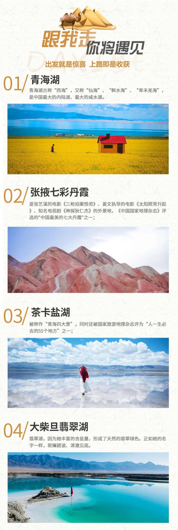 丹霞地質(zhì)公園+嘉峪關(guān)+敦煌+莫高窟+鳴沙山月牙泉+阿克塞石油小鎮(zhèn)+大柴旦翡翠湖+柴達木盆地+茶卡鹽湖+青海湖二郎劍景區(qū)+塔爾寺