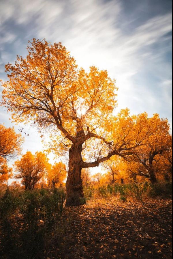 大漠駝鈴從古時傳來,在土地上發(fā)出厚重的回聲胡楊林靜默地散發(fā)力量。 深秋,就應(yīng)該去看最蒼茫、最絢爛的顏色看最美艷、最古老的胡楊。