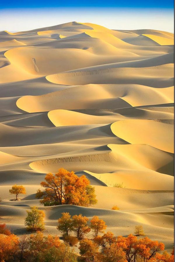 深秋,定要赴一場金色的盛宴,在戈壁大漠,在昆侖雪山上燃燒的金黃。