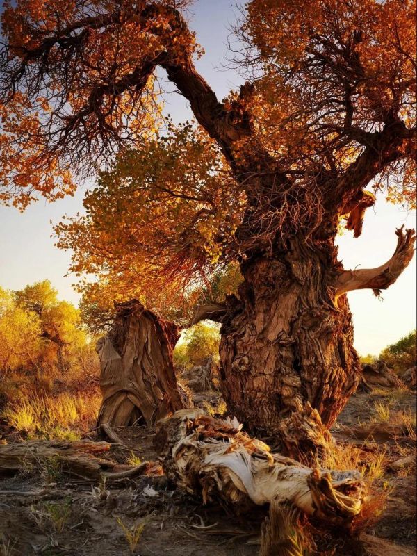 有時,會看到前來的老人站在樹旁,含著淚光望著身前的胡楊,我覺得他是木壘胡楊的化身。 他們同樣被歲月侵蝕。