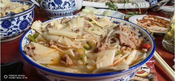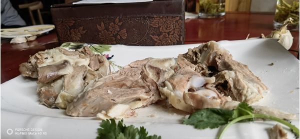 午餐吃的羊肉和面皮,羊肉鮮嫩而不膻,配合辣椒蘸料和蒜瓣,真是一道人間美味;面皮就更有講究了,據(jù)說(shuō)武威面皮子在本類食品中的制作方法、口感全國(guó)獨(dú)一家,是因制作時(shí)要加蓬灰。蓬灰這種東西,其主要成分是碳酸鉀。據(jù)現(xiàn)有資料,面食中加蓬灰的只有蘭州牛肉面和涼州面皮子。加蓬灰,面得筋而精,使面筋而精的東西也多,獨(dú)有蓬灰,在蘭州牛肉面和涼州面皮子中無(wú)其它物可替代。雖說(shuō)現(xiàn)在蓬灰有了工業(yè)生產(chǎn)品,用起來(lái)也方便,但終究不如用土法燒制的蓬灰做出來(lái)的地道。洗、蒸面皮子辛苦。洗時(shí)將面攪成糊狀,加適量蓬灰,一遍一遍澆洗,無(wú)法溜下籮兒的便是面筋。工序不復(fù)雜,但繁復(fù),一遍又一遍。大清早起來(lái)要蒸,一扇一扇,十幾架籠架起來(lái),火候如一,過(guò)火或火不透,都會(huì)影響面皮子的成分和質(zhì)量。面皮子一出籠,倒扣在案板和其它有案面的東西上,抹上熟清油,不起眼的面皮子便亮旺旺地呈現(xiàn)在人們面前。好的面皮子吃起來(lái)確實(shí)筋道。不放任何調(diào)料,抓一塊放到嘴里咬嚼,也會(huì)食欲大增,這種吃法叫吃甜面皮。那種甜,與糖味無(wú)關(guān)。蓬灰加的多少、蓬灰材質(zhì)的好壞、洗面皮子的人的手感、面的質(zhì)量,都是好的面皮子受人稱道的條件。蓬灰加得多了,面皮子的味會(huì)苦,吃一口面皮,羊肉味道仿佛蘊(yùn)含在面皮中,在口腔中釋放,面皮軟糯,味道醇厚,湯汁濃郁,來(lái)武威不吃一碗面皮,實(shí)屬可惜。