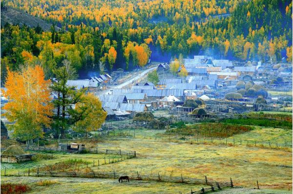 圖瓦人為主,位于阿爾泰山山脈的山谷平地上,與哈薩克斯坦的大山遙遙相望,阿爾泰山上密密麻麻的金黃金黃的松樹(shù)林一直延伸到白哈巴村里,村民住的木屋和圈養(yǎng)牲畜的柵欄錯(cuò)落有致地散布在松林和樺林之中,安寧、祥和 。奇臺(tái)江布拉克國(guó)家森林公園