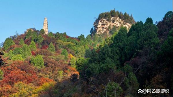 壯美”青松翠柏間,黃櫨如火焰般綻放著熱情,高崖絕壁的密林間層林盡染。山色五彩斑斕,絢麗多姿,完全不遜于紅葉谷,不禁讓人感嘆大自然調(diào)色盤的神奇。
