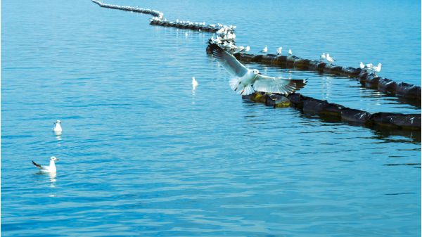 清晨,這里的海鷗全部集中在一起,當(dāng)游客靠近之時,它們成群結(jié)隊地離開水面飛向遠處,不一會兒又全部飛回來,落入水中,時而盤旋飛舞,時而在水中嬉戲,一幅生動的畫面展現(xiàn)在眼前。