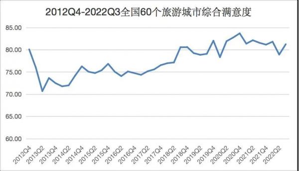 2020年、2021年、2022年前三季度游客滿意度分別為80.95、82.47、80.63,2022年第三季度受國內(nèi)疫情防控形勢影響,游客滿意度回落至基本滿意區(qū)間。在國民旅游權(quán)利日益彰顯、目的地旅游資源配置不斷優(yōu)化、旅游市場更加開放自由的旅游發(fā)展新階段,游客需求、城市作為、企業(yè)創(chuàng)新、行業(yè)監(jiān)管共同推進(jìn)了旅游服務(wù)質(zhì)量的提升,人民旅游幸福感、獲得感不斷提升。