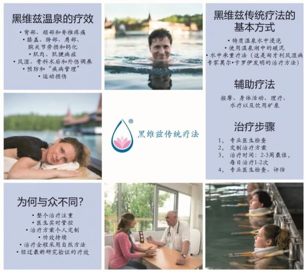 因此,雖然浴療是黑維茨湖水治療效果的基礎,但同時也包括其它治療法,比如著名的重量浴,各種醫(yī)療按摩,以及飲水治療等。