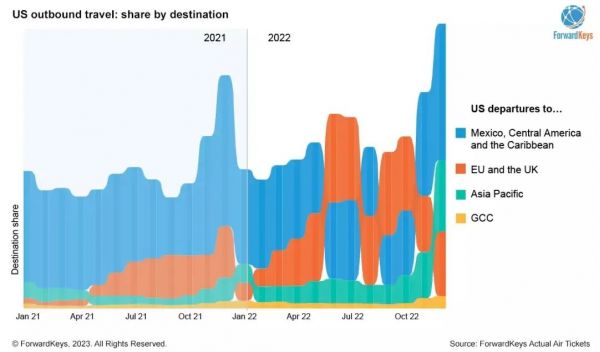 全球旅游分析公司ForwardKeys近日發(fā)布的數(shù)據(jù)顯示,2022年美國出境航空旅客相比2019年僅下降了19%,加勒比和歐洲為主要目的地。歐洲出境航空旅客數(shù)量復蘇最快,相比2019年下降17%。亞洲地區(qū)依然面臨挑戰(zhàn),2022年1-8月,從美國前往東京的旅客數(shù)量相比2019年下降了28%,前往首爾的旅客減少了45%,飛往香港的旅客減少了97%。
