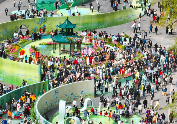 吳沛萌介紹,今年的漢服花朝節(jié)除了讓這些漢服達(dá)人生動(dòng)還原“竹林七賢”“十二花神”等人物角色,還有穿著漢、唐、宋、明等形制漢服的數(shù)百名“同袍”與現(xiàn)場(chǎng)萬(wàn)名游客共同巡游賞花、沉浸互動(dòng),讓游客更身臨其境地感受漢服麗人與春山花海相映成趣,體驗(yàn)跨越千年從畫(huà)卷中緩緩行走的故事感。