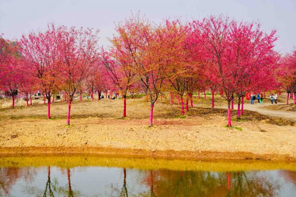 恰逢周末,在湘潭市岳塘區(qū)昭山鎮(zhèn)七星村,近三百畝的櫻花園里,“香妃櫻”“中國紅”“香水櫻”“牡丹櫻”“紅粉佳人”等品種的櫻花,紅似火、粉如霞,共同形成了一片浪漫的花海,游人在櫻花樹下打卡拍照,盡情享受融融春日的歡樂。