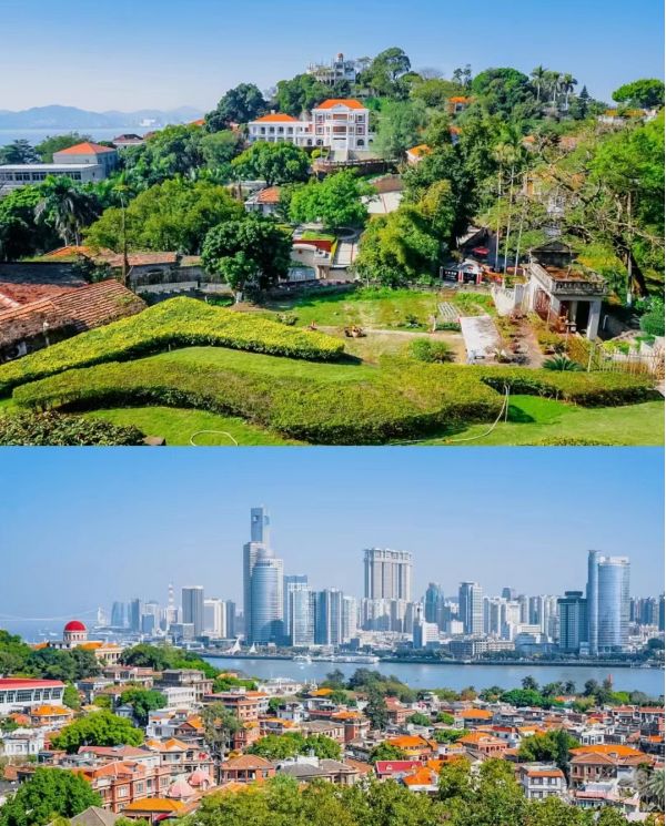 鼓浪嶼,原名“圓沙洲”,別名“圓洲仔”,南宋時期命“五龍嶼”,島西南有一海蝕巖洞受浪潮沖擊,聲如擂鼓,自明朝雅化為今名稱“鼓浪嶼”,位于福建省廈門市思明區(qū)鼓浪嶼街道,面積1.88平方公里,與廈門島隔海相望,至高點(diǎn)為日光巖,與廈門島上的廈門世茂海峽大廈、廈門大學(xué)等隔海相望。