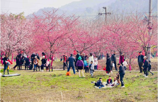 2022年,櫻花園舉辦首屆櫻花旅游文化節(jié),吸引數(shù)萬名游客紛至沓來,更有不少網(wǎng)紅前來打卡。今年2月18日,“花樣湘潭,醉美七星”2023湘潭第二屆櫻花旅游文化節(jié)如期開幕,引發(fā)廣泛關(guān)注。截至目前,平均每天有1萬多名游客前來七星村觀賞櫻花。