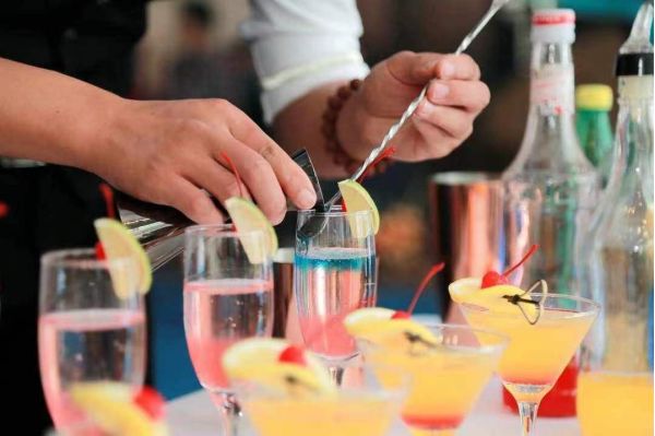 雞尾酒、啤酒和威士忌是人們在酒吧中常用的飲品,西方人在酒吧中喝紅、白酒(葡萄酒)的較少,大多正餐時,紅白酒只是起輔助消化的作用,飯完酒完,這一點不像國內(nèi),飯菜吃完了,酒還可以繼續(xù)喝下去。如果是在酒吧喝紅、白酒,西方人通常是在正餐前開胃用,一般是一杯13—17度的白酒,因為白酒偏酸,利于開胃。
