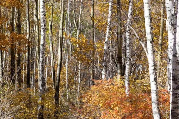 白樺林是霧靈山常見(jiàn)天然林之一,主要分布在龍?zhí)堆刈樱執(zhí)锻\?chē)場(chǎng)下)、落松臺(tái)、流水溝、南峪、冰溝等海拔800-1850米的各坡向范圍內(nèi),白樺喜光耐寒,對(duì)土壤適應(yīng)性強(qiáng),深根性,耐瘠薄。白樺樹(shù)干修葺挺拔,皮色光滑潔白,枝葉扶疏雅致、飄逸如仙,亭亭玉立。春天到來(lái)之際,白白的干,綠綠的葉,點(diǎn)綴著大山。秋來(lái)之日,綠綠的葉子變成金黃,秋風(fēng)掃過(guò),搖落滿地金黃,頗為壯觀。無(wú)論是季節(jié)變換的鮮明色彩,還是身潔如玉的高尚品格,都像是婆娑起舞的少女,被譽(yù)為