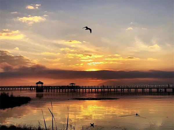 清晨,太陽(yáng)沖破地平線,陽(yáng)光從建水縣雙龍橋的橋孔下穿射而出,宛如油畫般的場(chǎng)景,就這樣展現(xiàn)在眼前