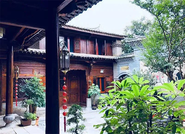 石屏水云居客棧本為民國年間富商張正堂為其母親建蓋,如今被改造成了客棧,但依舊保留著當時設計者的審美,綠樹掩映著青瓦白墻,小橋流水安靜地穿過四合院落。
