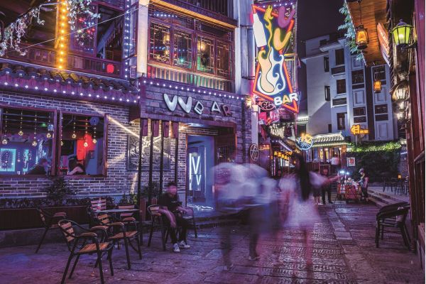 幾年前與化龍井、紅磚民居、小廣場(chǎng)一同完成改造的,是沿街“建新如舊”的40棟仿古商鋪,同業(yè)聚集的主題沒(méi)變,商鋪搖身變?yōu)?0家風(fēng)格各異的酒吧,從此,長(zhǎng)沙聊清吧文化再也繞不開(kāi)這條古街。酒吧必然是聲音的制造者,雨聲、腳步聲、鄰里間的高談闊論聲……化龍池原本有很多聲音,此后又多了一種替這座城市記憶、見(jiàn)證的聲音。