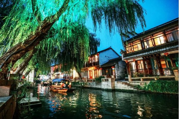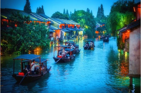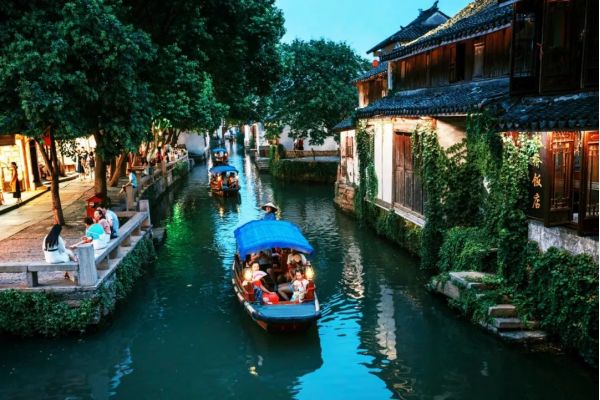 夜幕降臨,華燈初上,乘一艘手搖船夜游水巷,撲面而來(lái)的是夏日清涼,吱嘎的搖櫓聲像溫柔的歌謠滌蕩著浮躁的心靈。