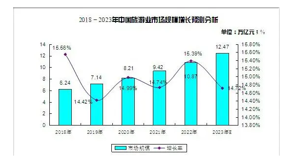 2023年中國(guó)旅游市場(chǎng)高速增長(zhǎng),入出境市場(chǎng)平穩(wěn)發(fā)展,供給側(cè)結(jié)構(gòu)性改革成效明顯。從2012-2017年旅游行業(yè)數(shù)據(jù)來(lái)看,全國(guó)旅游收入保持著兩位數(shù)穩(wěn)定增長(zhǎng)。2014年全國(guó)旅游收入達(dá)3.73萬(wàn)億元,同比增長(zhǎng)25.4%,達(dá)到近幾年來(lái)增速峰值,2015年增幅相對(duì)有所放緩。隨著近年來(lái),政府大力發(fā)展全域旅游、冰雪旅游等,2015-2017年中國(guó)旅游業(yè)收入增速不斷提高。2018年全國(guó)旅游收入將達(dá)6.24萬(wàn)億元,增速約增至15.6%,2023-2028年中國(guó)旅游行業(yè)市場(chǎng)深度研究及發(fā)展前景投資可行性分析報(bào)告預(yù)計(jì)到2023年全國(guó)旅游收入將達(dá)到12.47萬(wàn)億元 ?