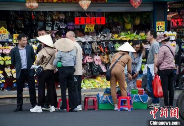 每天一早,來自越南芒街市的范氏香通過中越友誼大橋走到一河之隔的廣西防城港市東興國門景區(qū),向游客售賣她從越南帶來的小商品,她這項已堅持十余年的跨國小生意暫停三年后,如今得以重新開啟。