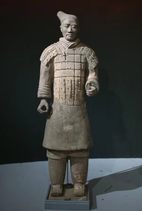 兵馬俑的塑造,基本上以現實生活為基礎,手法細膩、明快。每個陶俑的裝束、神態(tài)都不一樣。人物的發(fā)式就有許多種,手勢也各不相同,面部的表情更是各有差異。從他們的裝束、神情和手勢就可以判斷出是官還是兵,是步兵還是騎兵??傮w而言,所有的秦俑面容中都流露出秦人獨有的威嚴與從容,具有鮮明的個性和強烈的時代特征。