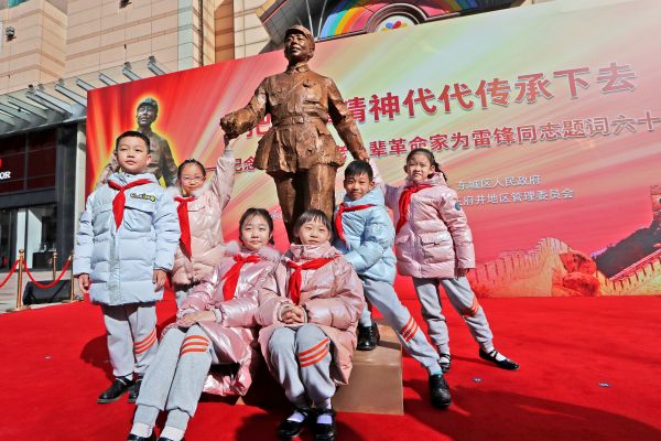 3月1日,由中國(guó)美術(shù)館、北京市東城區(qū)委、東城區(qū)人民政府共同主辦的“把雷鋒精神代代傳承下去—紀(jì)念毛澤東等老一輩革命家為雷鋒同志題詞六十周年”活動(dòng)在北京王府井步行街舉行?;顒?dòng)現(xiàn)場(chǎng),全國(guó)政協(xié)常委、民盟中央副主席、中國(guó)美術(shù)館館長(zhǎng)、中國(guó)美協(xié)副主席吳為山與東城區(qū)委書記孫新軍共同為雷鋒同志銅像揭幕。